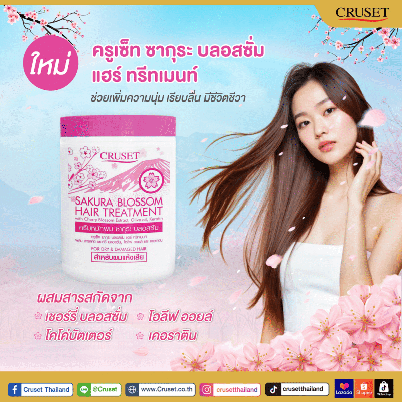 ✨ ใหม่ล่าสุด ครูเซ็ท ครีมหมักผม ซากุระ บลอสซั่ม ทรีทเมน