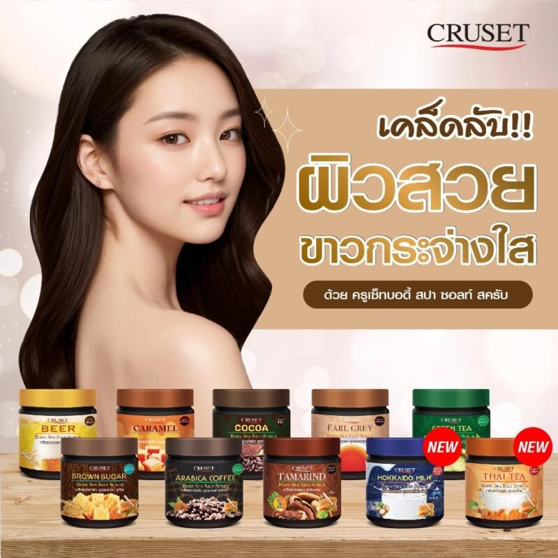 CRUSET Body Spa Salt Scrub เกลือสครับขัดผิวกาย แบบล้างออก ช่วยขจัดเซลล์ผิวที่เสื่อมสภาพแล้ว พร้อมบำรุง ผิวกาย ให้เปล่งปลั่งมีน้ำมีนวล เนียนนุ่มน่าสัมผัส ผสานสารสกัดน้ำผึ้ง ที่ช่วยปลอบประโลมผิว เติมเต็มความชุ่มชื้น ให้ผิวแลดูฉ่ำน้ำ